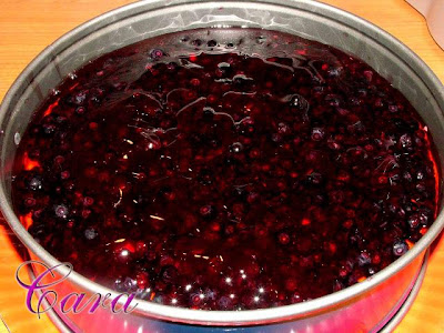 Se prepara glazura de gelatina din praf Tort Gelee, zahar si suc de afine.
