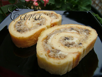 Se distribuie pe toata suprafata aluatului compozitia de carne...